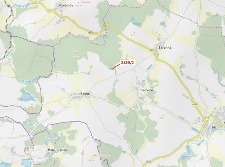 Lesní pozemek o výměře 3636 m2, parcelní číslo 2129/2, podíl 1/1, katastrální území Štítné, obec Žirovnice, obec s rozšířenou působností Pelhřimov, okres Pelhřimov, Kraj Vysočina. Částečně po těžbě.