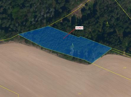 Lesní pozemek o výměře 3636 m2, parcelní číslo 2129/2, podíl 1/1, katastrální území Štítné, obec Žirovnice, obec s rozšířenou působností Pelhřimov, okres Pelhřimov, Kraj Vysočina. Částečně po těžbě.