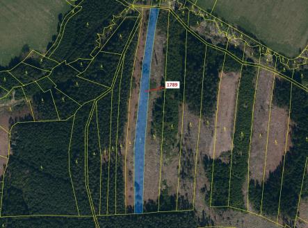 Lesní pozemek o výměře 5 036 m2, parcelní číslo 1789, podíl 1/1, katastrální území Štítné, obec Žirovnice, obec s rozšířenou působností Pelhřimov, okres Pelhřimov, Kraj Vysočina. Po těžbě.