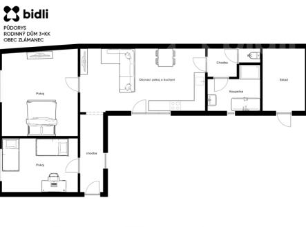 Rodinný dům 3+kk, UP 100 m2, CP 509 m2, obec Zlámanec