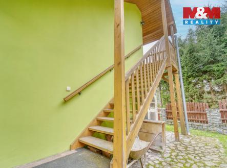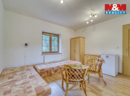 Na prodej rodinný dům v malebné obci Plešovice nedaleko Českého Krumlova. Tento dům o užitné ploše 154 m² je zasazen na polosamotě, zajišťuje klid a soukromí. Na pozemku rozloze 300 m² najdete vše potřebné pro pohodlné bydlení. Dům je rozdělen na dvě nadzemní podlaží. V přízemí se nachází vstupní chodba, prostorná kuchyně s jídelnou, obývací pokoj s přístupem na terasu, ložnice, koupelna se sprchovým koutem, samostatná toaleta a technická místnost s vlastním vchodem. První patro je rozděleno na dva apartmány, které lze pronajímat, nebo využít k dvougeneračnímu bydlení. Vytápění je zajištěno tepelným čerpadlem a elektrokotlem, teplou vodu dodává bojler. Nemovitost je ve velmi dobrém stavu a nabízí ideální příležitost pro klidné rodinné bydlení či investiční záměr.