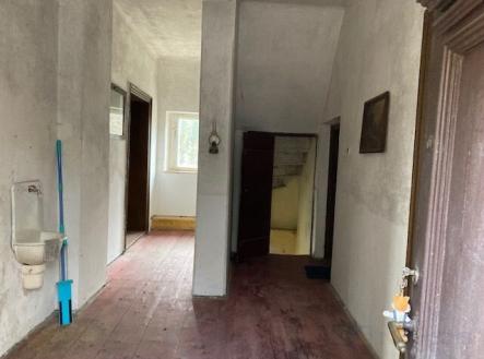 Dům byl postaven na přelomu 19. a 20. století jako zájezdní hostinec s prodejnou potravin místním stavitelem přímo na křižovatce cest (dnes poměrně rušné silnice) 1. podlaží (pod úrovní silnice): původně dva pivní sklepy se samostatnými vchody ze zadní části domu, hliněná podlaha 2. podlaží s mezipatrem: původně dva pokoje pro hosty s nízkým stropem - cca 180 cm (dnes koupelna a garáž), sklep, předsklepí s vedlejším vchodem ze strany domu 3. podlaží (na úrovni silnice): hlavní vchod od silnice, čtyři místnosti, původně prodejna, ložnice provozovatele, výčep a hostinec (dnes kuchyň, obývací pokoj, ložnice, sklad) 4. podlaží (první patro nad úrovní silnice): dva hostinské pokoje s komorami, jeden malý hostinský pokoj bez komory, dvě samostatné komory 5. podlaží: půda - lze se postavit pouze uprostřed, tedy nevhodná k vytvoření obytného prostoru Provoz domu, provedené stavební úpravy - provedené úpravy: byl stržen hrázděný přístavek přes celou výšku domu v jeho zadní části, kde bývaly v každém patře suché záchody, neboť hrozilo jeho zřícení (původní plán jeho pozdějšího vybudování včetně sociálního zařízení nebyl uskutečněn); byly vyvložkovány komíny a znovu vystavěny části nad střechou; byla vyměněna okna na východní straně včetně nahrazení výlohy obchodu oknem; původní eternitová krytina nahrazena ve spodní části oplechováním (trámoví napadeno červotočem a tesaříkem, velmi špatný stav - elektrické rozvody jsou až na dvě místnosti původní (textilní izolace), studna vlastní, sdílená pro několik sousedních domů (budováno společnými silami v 50. letech), pramen na pastvinách v kopci nad silnicí, přepad, septik.
