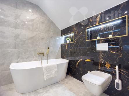 Nabízíme luxusní dům, po kompletní rekonstrukci. Rádi si dopřejete, máte rádi hezké věci? Tohle bude dům pro Vás! - obrovská kuchyň od Hánaka, americká lednice, bar - velkorysá jídelna pro 8 osob navazující na obývací pokoj - mramorové prvky, dekorativní nástěnné lišty, vkusné stropní osvětlení ve všech částech domu - obrovská šatna pro kabelky, boty a ošacení - 3 toalety, 2 koupelny - pracovna ve spodní části domu - 3 samostatné neprůchozí ložnice (manželská se samostatným WC/koupelnou) - garáž s 2 technickými místnostmi - zabezpečovací i kamerový systém je samozřejmostí - bazén pro letní osvěžení - zahradní dům Obec Zlatá je klidnou lokalitou pro rodinný život, zároveň je nedaleko Prahy. Na Černý most trvá cesta 15minut, na vlak do Úval pak sotva 5minut. NEdaleko, avšak dost daleko od obce/domu se pak chystá obchvat Úval silnice č. 12 a z jižní strany pak přímé napojení z Říčan silnicí 101. Zavolejte si o svou prohlídku.
