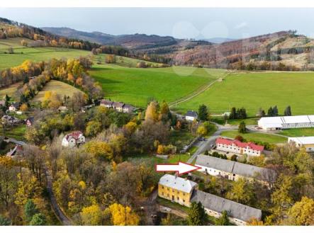 Prodej stavby 190m2 s půdou a pozemek 2288m2. Jeseník-Ondřejovice.