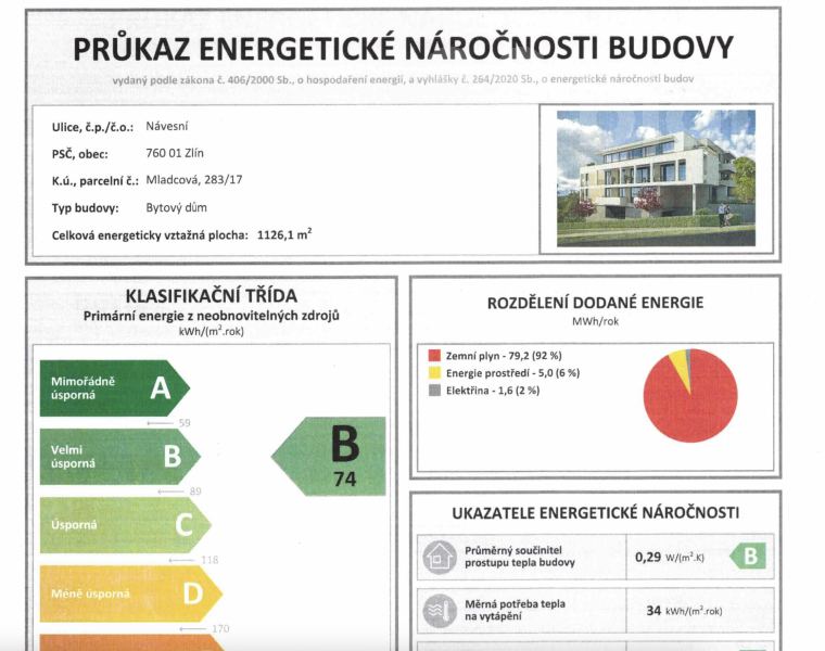 V exkluzivním zastoupení Vám nabízíme ke koupi prostorově nadstandartní byt o dispozici 2+1 (79,43 m2) s balkonem (7,72 m2) a sklepem (2,90 m2) a šatn ou v 1.NP komorního developerského projektu "Byty na Mladcové". Tento bytový dům s výtahem je situovaný v žádané místní části krajského města Zlína a nabízí ve třech nadzemních podlažích 11 bytových jednotek, při jejichž výstavbě je kladen především důraz na kvalitu, soukromí a pohodlí moderního bydlení. Součástí tohoto domu je 19 vnitřních parkovacích stání, které jsou umístěny v podzemním podlaží a jsou rozděleny na tři samostatné stání a 16 parkovacích míst v zakladačích, což je výrazně více, než je běžné u jiných projektů. Cena parkovacího stání je 750.000,- Kč vč. DPH a cena zakladače je 450.000,- Kč vč. DPH a nejsou zahrnuty v ceně bytu. Každý z bytů v projektu "Byty na Mladcové" reprezentuje spojení vyššího standardu a kvalitních materiálů, které zajišťují nejen komfort, ale i dlouhodobou hodnotu bydlení. Bytový dům disponuje energetickou třídou B - což nejen snižuje provozní náklady pro majitele, ale zároveň podtrhuje vizi dlouhodobé udržitelnosti. Více informací o standardech vybavení a o celém projektu najdete na našem webu projektu. Výstavba byla zahájena ve 04/2025 a předpokládaný termín dokončení a předání bytů novým majitelům je 12/2026. Výhradně Vám také zajistíme nejvýhodnější financování na trhu a to díky nezávislé spolupráci se všemi komerčními bankami na trhu. Můžeme také poskytnout i alternativní možnosti financování např. skrze družstevní vlastnictví. Mladcová, to není je dobrá adresa s luxusními výhledy do okolí, ale i bezpečné bydlení v zeleni s výbornou dostupností do centra města. Autem zhruba 10 minut či MHD, kdy linka č. 31 jezdí několikrát do hodiny. V těsné blízkosti projektu se nachází yoga studio i příjemná kavárna, v místní části Mladcová je i MŠ, fotbalové a tartanové hřiště, dětské hřiště a tenisové kurty. Spoustu možností k volnočasovým aktivitám, ale i množství škol všech stupňů vzdělávání a veškeré další zázemí městského života Vám Baťovo město nabídne dosyta.