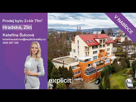 Prodej bytu 2+kk s lodžií ve skvělé lokalitě – Hradská ulice, Zlín Hledáte byt ideální velikosti v klidném prostředí, ale zároveň s perfektní dostupností do centra i do přírody? Tento byt nabízí pohodlí, dostatek prostoru a výbornou občanskou vybavenost v bezprostředním okolí. Byt o celkové ploše 71 m² se nachází v prvním nadzemním podlaží bytového domu, který již prošel částečným zateplením; zbývající části budou dokončeny v příštím roce. - atraktivní lokalita v samém centru Zlína - kompletní občanská vybavenost v docházkové vzdálenosti - prostorná lodžie - možnost dokoupení garážového stání - sklep o velikosti cca 5 m² Byt zaujme svou otevřenou dispozicí 2+kk, kterou lze upravit na 3+kk. Dominantou je prostorná lodžie, která byt nádherně prosvětluje a dodává mu vzdušný, příjemný charakter. Zároveň rozšiřuje obytný prostor a poskytuje místo k relaxaci. Po vstupu do bytu vás přivítá otevřený a světlý prostor. Po pravé straně zádveří se nachází samostatné WC, pračka a sušička. Chodba dále vede ke koupelně vybavené vanou, velkým umyvadlem, toaletou a bidetem. Následně plynule přechází do kuchyňské části bez dveří. Kuchyňskou linku tvoří vestavná trouba, kombinovaná varná deska a digestoř, rohový dřez, myčka nádobí, dostatek skříněk, vestavná mikrovlnná trouba a vkusný regál na víno. Pracovní plocha je prakticky u okna. Hlavní obývací prostor navazuje na lodžii a dvojí dveře na další pokoj, který lze příčkou rozdělit na půl. Celkově byt působí čistě, svěže a nabízí velmi příjemné bydlení. V celém bytě je instalováno podlahové vytápění. V okolí domu najdete vše, co potřebujete ke komfortnímu životu: do 5 minut jste na náměstí, v divadle, multikině, obchodním centru i v řadě kaváren, restaurací a obchodů. Přímo u domu se nachází vnitřní i venkovní bazén a v pěší vzdálenosti je také les. K bytu je možné dokoupit garážové stání, což výrazně zvyšuje komfort bydlení i investiční potenciál této nemovitosti. Těším se na společné prohlídky tohoto krásného bytu. Kateřina Šulcová, realitní makléřka Explicit Reality