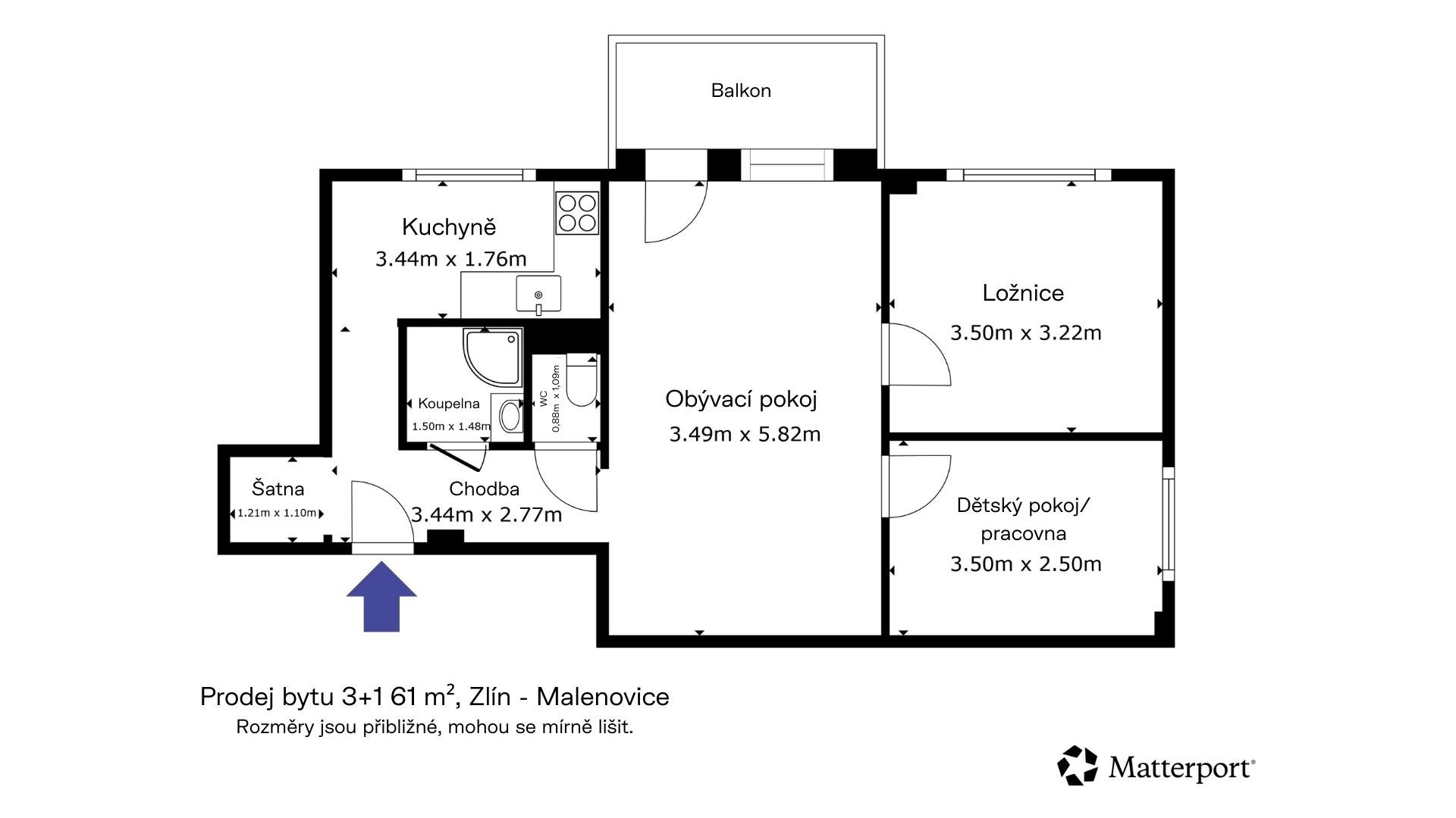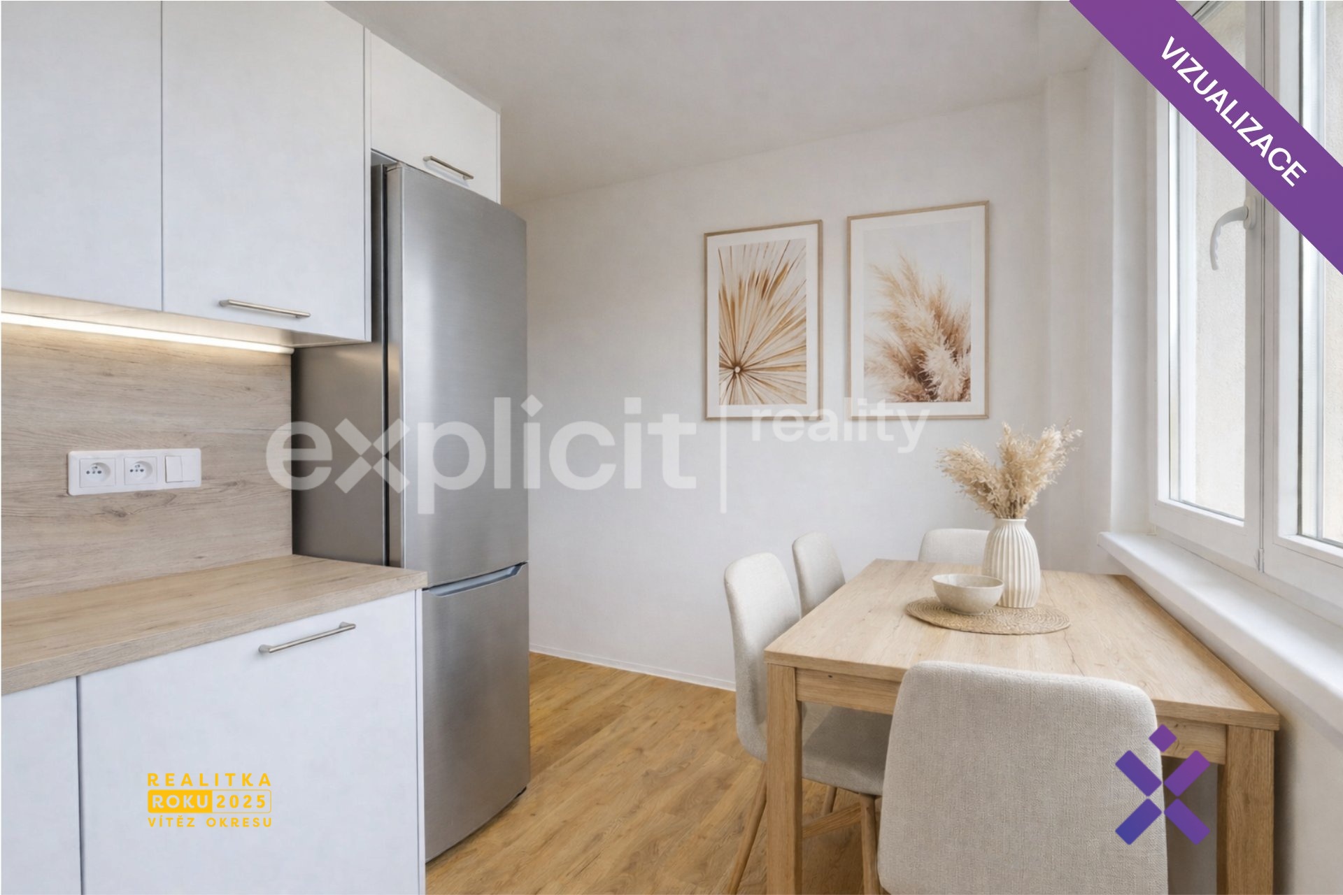 Kompletně zrekonstruovaný byt 3+1 s balkonem | JV orientace | Malenovice u Zlína | 15 minut do centra Zlína | 5 minut na dálnici Hledáte moderní, světlý byt připravený k okamžitému nastěhování v klidné lokalitě a zároveň s výbornou dostupností? Tento kompletně zrekonstruovaný byt 3+1 o užitné ploše 61 m² se nachází ve 4. podlaží (3. NP) revitalizovaného (2024) panelového domu na ulici Třída Svobody v Malenovicích u Zlína a splní očekávání i náročnějších zájemců. Byt je orientován na jihovýchod, díky čemuž je příjemně prosvětlený po celý den. K bytu náleží balkon o velikosti 4 m², sklepní kóje (1 m²) a v domě je k dispozici kolárna a sušárna. Obývací pokoj s balkonem, kuchyně a ložnice jsou orientovány na východ, dětský pokoj (případně pracovna) na jih. Z chodby je vstup do zděné koupelny se sprchovým koutem, úložným prostorem pod umyvadlem a připraveným místem pro pračku i sušičku a dále na samostatné WC se závěsným systémem Geberit. V zádveří se nachází oddělená šatna, která výrazně zvyšuje komfort bydlení. Bílá moderní kuchyňská linka je vybavena vestavěnými spotřebiči – elektrickou varnou deskou, elektrickou troubou, myčkou a digestoří. Je zde připraven prostor pro zapojení lednice a místo pod oknem je ideální pro kompaktní jídelní stůl, který dodá prostoru útulnou atmosféru. Byt prošel kompletní rekonstrukcí v roce 2025 s důrazem na kvalitu materiálů a moderní vzhled. Instalovány byly sádrokartonové podhledy s vestavěným LED osvětlením, na chodbě jsou pohybové senzory. Podlahy tvoří kvalitní vinyl se zámkovým systémem v jednotném dekoru, koupelna a WC jsou řešeny v elegantní šedé dlažbě s kamenným dekorem. Byt má novou měděnou elektroinstalaci, nové omítky, rozvody vody a odpadů, stupačky, je připojen na optický kabel a kabelovou televizi. V obývacím pokoji je připravena přípojka pro klimatizaci. Vstupní dveře jsou protipožární od společnosti BOULIT s.r.o. Vytápění je dálkové z teplárny, radiátory jsou osazeny termoregulačními hlavicemi a měřiči spotřeby. Dům prošel v roce 2024 rozsáhlou rekonstrukcí exteriéru - fasáda se zateplením, nové balkony, střecha, vstupní dveře. Na rok 2026 je plánována modernizace interiéru - podlahy, výmalba, výtahové dveře,.. Byt se nachází v klidné obytné části Malenovic, s veškerou občanskou vybaveností v docházkové vzdálenosti. Do centra Malenovic dojdete za 8 minut pěšky, na dálnici jste autem do 5 minut. Lokalita nabízí školy, školky, dětská hřiště, lékaře, restaurace, obchody, sportovní centrum i výborné dopravní spojení – MHD, vlak, autobus i rychlé napojení na hlavní tahy. Byt je připraven k zařízení dle vlastního vkusu. Pro lepší představu přikládáme vizualizace možného vybavení. Ideální volba pro rodinné bydlení i jako investice. Ráda vám byt osobně představím.