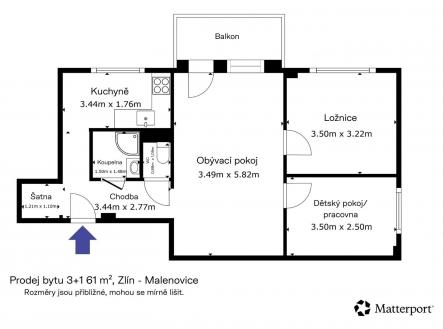 Prodej bytu 3+1 61 m², Zlín - Malenovice