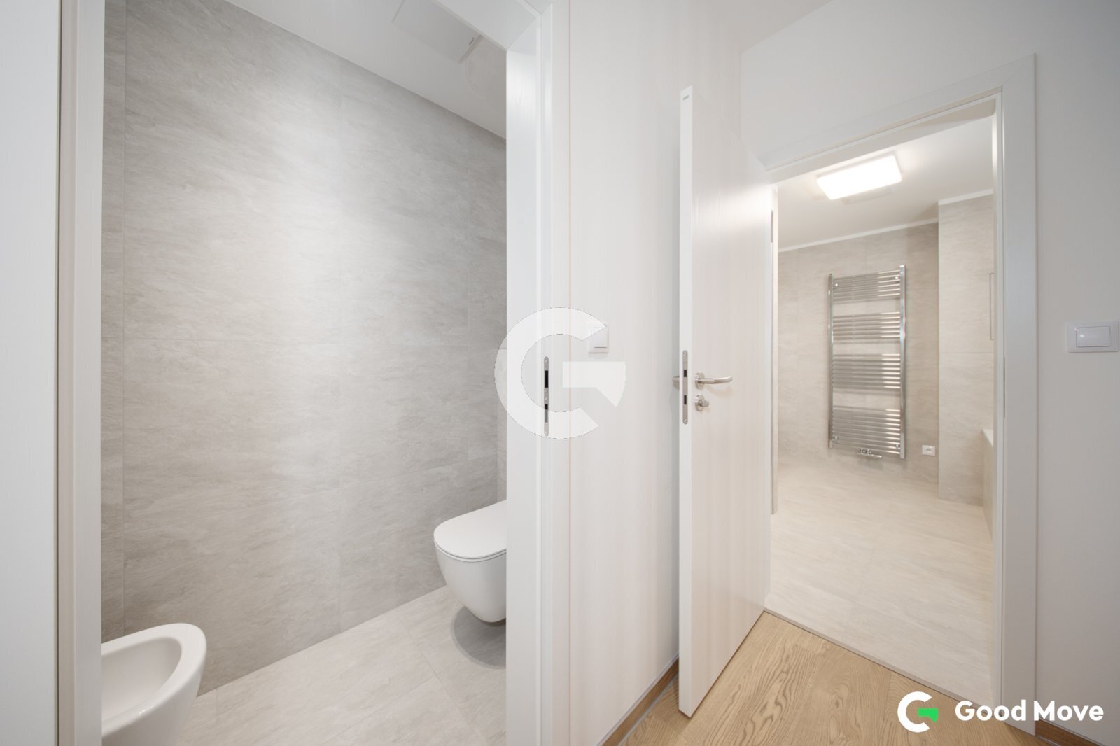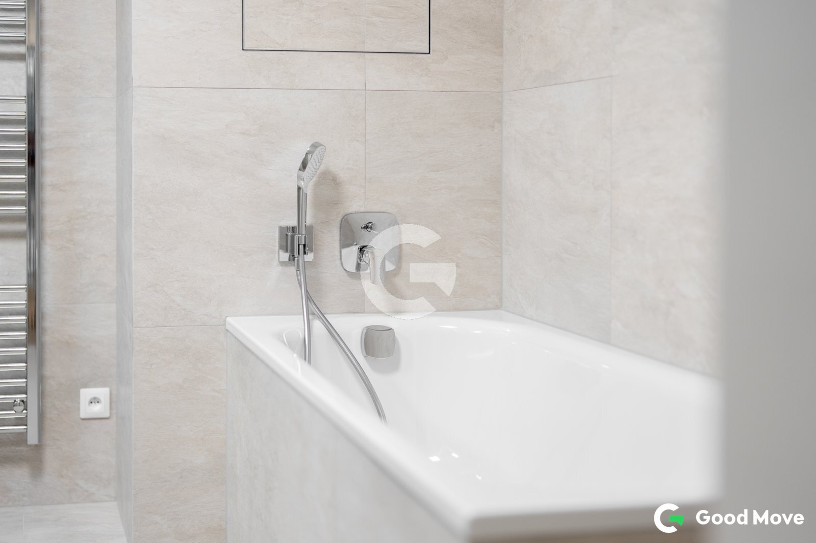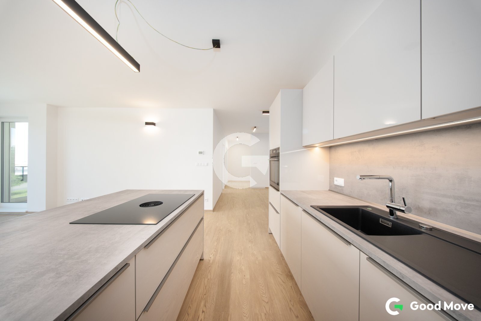 Nabízíme k prodeji nádherný, zcela nový byt o dispozici 3+kk a celkové ploše 90,6 m², který splňuje veškeré požadavky na moderní a komfortní bydlení. Nachází se ve velmi klidné lokalitě, která nabízí ideální rovnováhu mezi soukromím a dostupností – v bezprostřední blízkosti je nejen městská infrastruktura, ale také příroda a lesy, které vybízejí k procházkám a aktivnímu odpočinku. Byt disponuje prostornou terasou, která poskytuje příjemné místo pro relaxaci, posezení s přáteli nebo ranní kávu. Interiér je promyšlený do posledního detailu – srdcem bytu je luxusní kuchyňská linka od renomované společnosti Minár, vybavená vestavěnými spotřebiči značky AEG. Najdete zde indukční varnou desku Bora s integrovaným odtahem, myčku, kombinovanou troubu a ledničku s mrazákem, což zajišťuje maximální komfort při každodenním vaření. Obývací pokoj je prosvětlený díky velkému francouzskému oknu, které propojuje interiér s exteriérem a přináší do bytu dostatek denního světla. Všechna okna jsou vybavena venkovními žaluziemi, které umožňují regulaci světla i teploty a přispívají k příjemnému klimatu v bytě. Dispozice dále zahrnuje dvě samostatné ložnice, koupelnu a oddělenou toaletu, což zajišťuje praktické rozdělení prostoru pro rodinné i individuální bydlení. V celém bytě jsou použity kvalitní vinylové podlahy značky Gerflor, které kombinují elegantní vzhled s vysokou odolností a snadnou údržbou. K bytu náleží také sklep umístěný přímo na patře, což výrazně usnadňuje přístup a manipulaci s uloženými věcmi. Velkou výhodou je také garážové stání, které je součástí ceny. Byt je připraven k okamžitému nastěhování a představuje ideální volbu pro rodinu, pár nebo jako investici. Pokud hledáte bydlení, které spojuje kvalitu, styl a praktičnost, neváhejte nás kontaktovat. Tento byt si zamilujete na první pohled.