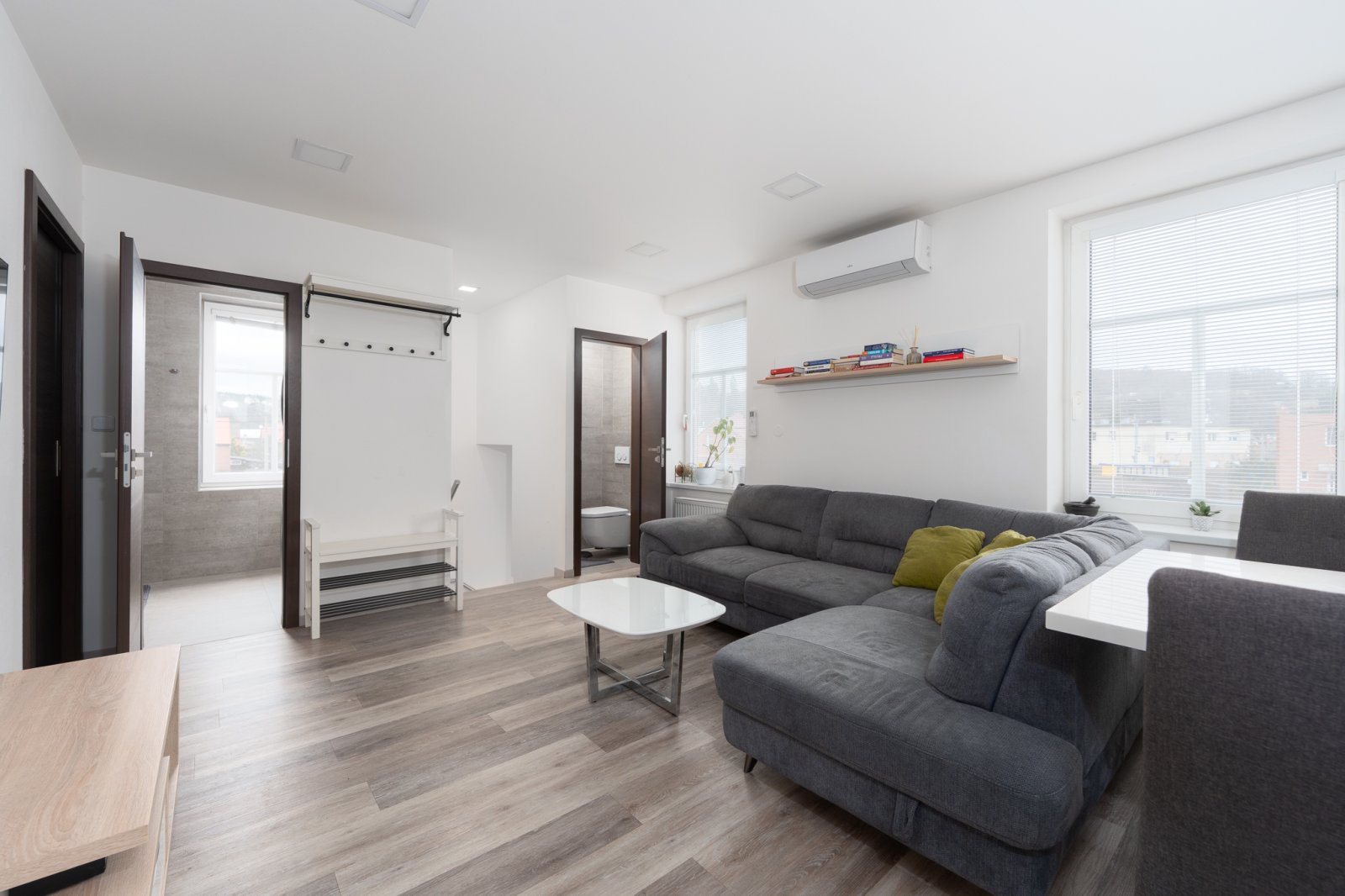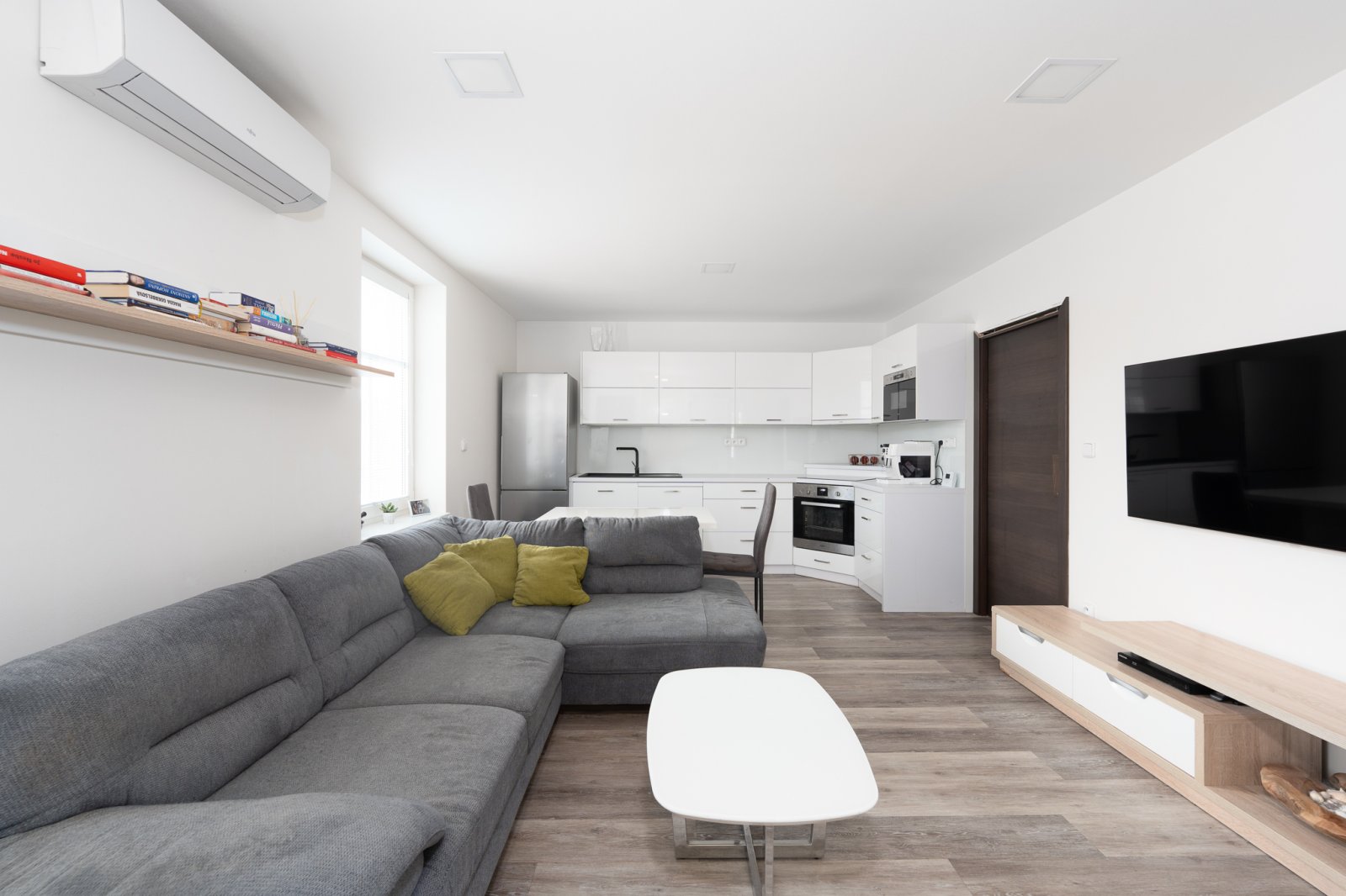 Nabízíme k prodeji byt o dispozici 3+kk ve vyhledávané lokalitě Zlín – Zálešná. Byt prošel kompletní rekonstrukcí před cca 11 lety a je ve velmi dobrém technickém stavu bez nutnosti dalších investic. V rámci rekonstrukce byly provedeny kompletně nové rozvody elektřiny a vody, nová koupelna se sprchovým koutem, samostatné WC i kuchyně, byt je zateplený zevnitř. Kuchyňská linka s vestavěnými spotřebiči značky Whirlpool, mezi které patří mikrovlnná trouba, horkovzdušná trouba, myčka na nádobí a indukční varná deska. Kuchyň je prakticky řešená a přirozeně navazuje na hlavní obytnou část bytu. Byt nabízí dva samostatné pokoje, které lze využít jako ložnici a dětský pokoj či pracovnu. Koupelna je vybavena sprchovým koutem, kvalitní sanitou značky Laufen a jsou zde připravené rozvody na pračku i sušičku. WC je samostatné, se závěsným systémem Geberit a sanitou Laufen. Velkým benefitem bytu je vysoce výkonná klimatizace značky Fujitsu, která umožňuje nejen chlazení, ale i vytápění a komfortně obslouží hlavní obytný prostor, dětský pokoj i ložnici. K bytu náleží také parkovací stání a zahrada.