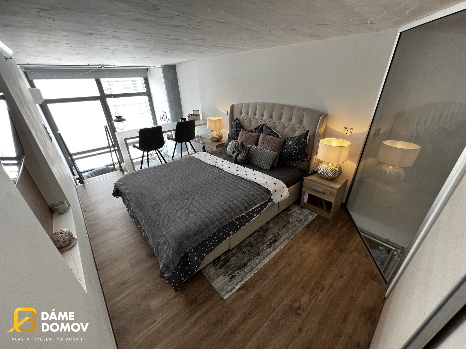 Máme pro Vás k pronájmu hezký byt s dispozicí 2+kk, 41 m² v centru města Zlína. Byt je loftový a je dispozičně řešen jako 2+kk, kdy ve spodní části bytu je koupelna, šatna, kuchyň, obývací pokoj a v horní části pak ložnice s části pro pracovnu a vestavěné skříně. Součástí pronájmu je veškeré vybavení bytu, kuchyňská linka se všemi spotřebiči, klimatizace, pračka, jídelní set, pracovní stůl, postel s matracemi, sedačka, vestavěné skříně. (vše co je na fotkách) V těsné vzdálenosti od bytu najdeme MHD, potraviny, Albert, restaurace, školky, školy, úřady, poštu a vše potřebné pro bydlení. Věříme, že se Vám zde bude velice příjemně bydlet. Byt je k nastěhování ihned. Cena 13.000 Kč + zálohy na energie ve výši 2.900 Kč. Celkové nájemné je tedy 15.900,- včetně poplatků Nájemce hradí kauci ve výši jednoho nájemného a provizi RK. Zveme Vás tímto na osobní prohlídku. Budeme se na vás těšit. Eduard Diakov & Dáme Domov