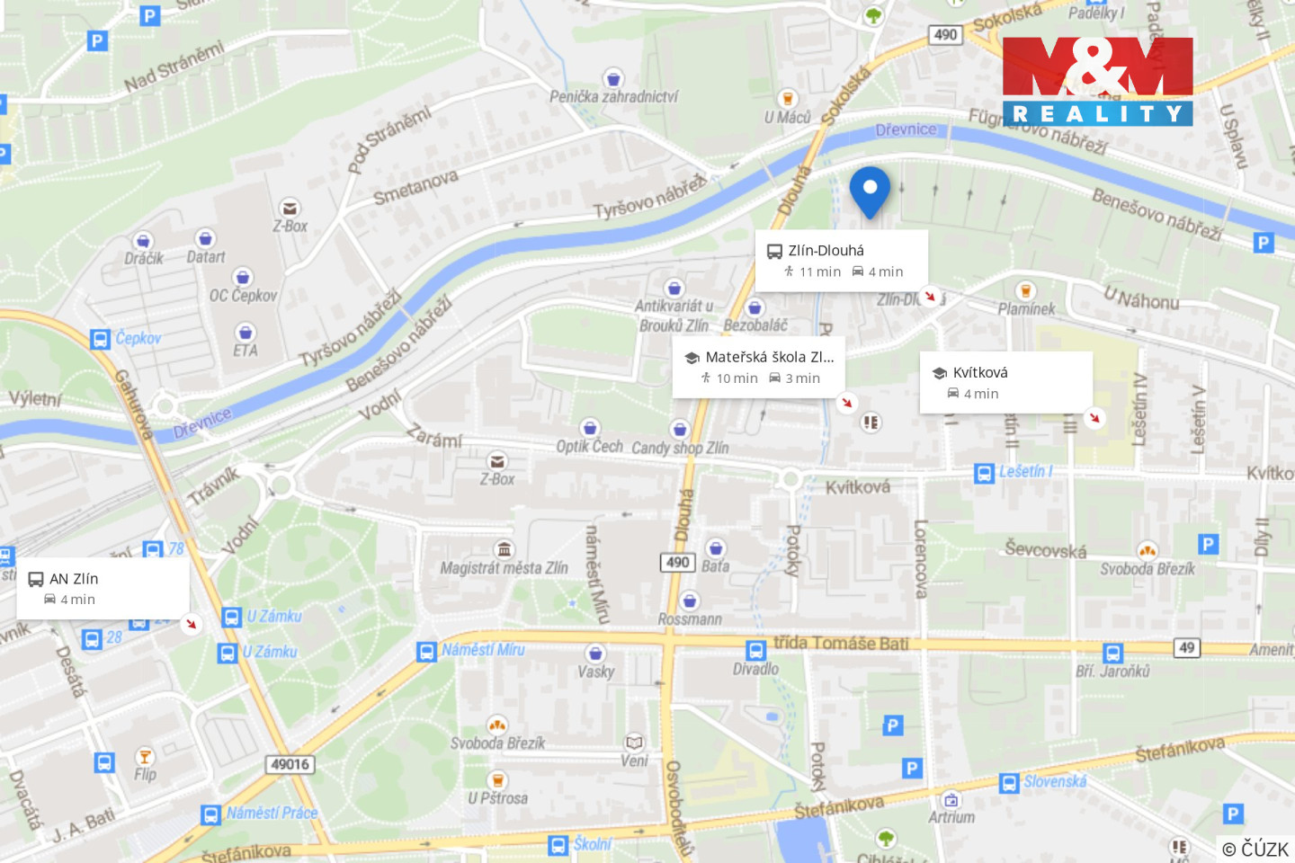 Pronájem bytu 2+1, 52 m², Zlín, ul. Benešovo nábřeží