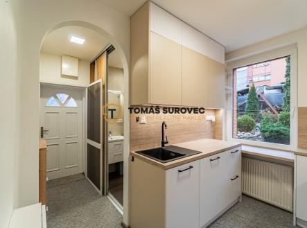 Baťovy domky jsou zlínská klasika. A právě tady na třídě Tomáše Bati Vám můžu nyní nabídnout pronájem zrekonstruovaného půldomku, kam se můžete od ledna 2026 nastěhovat. Vyznačuje se klasickým dispozičním řešením. Pravděpodobně Vás mile potěší útulná koupelna se sprchovým koutem a s WC, která má okno přivádějící do místnosti denní světlo a čerstvý vzduch. V přízemí se nachází moderně řešená kuchyň. Elegantní kuchyňská linka je vybavena vestavěnou troubou, lednicí , varnou indukční deskou a je zde zabudovaná pračka. Naproti kuchyně je obývací pokoj s velkou porcí úložného prostoru. Lze ho dovybavit pohovkou a televizí. Do patra vedou schody , ze kterých je vstup do dvou neprůchozích pokojů. Vytápění a ohřev teplé vody je řešen plynovým kotlem. Lokalita je velmi příjemná s výbornou občanskou vybaveností . V okolí najdete mateřskou školu, poštu, knihovnu . Supermarket Albert a zastávka MHD je od domu jen 5 minut chůze. Podsklepený půldomek na pronájem nabízí v neposlední řadě také příležitost k volnému vyžívání pozemku za domem. Ideální místo pro letní grilovačky a společné chvíle s rodinou či přáteli. Počáteční náklady: Cena měsíčního nájemného činí 13 900Kč + zálohy za energie jsou 5000Kč. Vratná jistota je 18 900Kč a provize RK 13 900Kč. Chcete to vidět naživo? Na místě vám vše vysvětlím a ukážu. Na viděnou ve Zlíně!