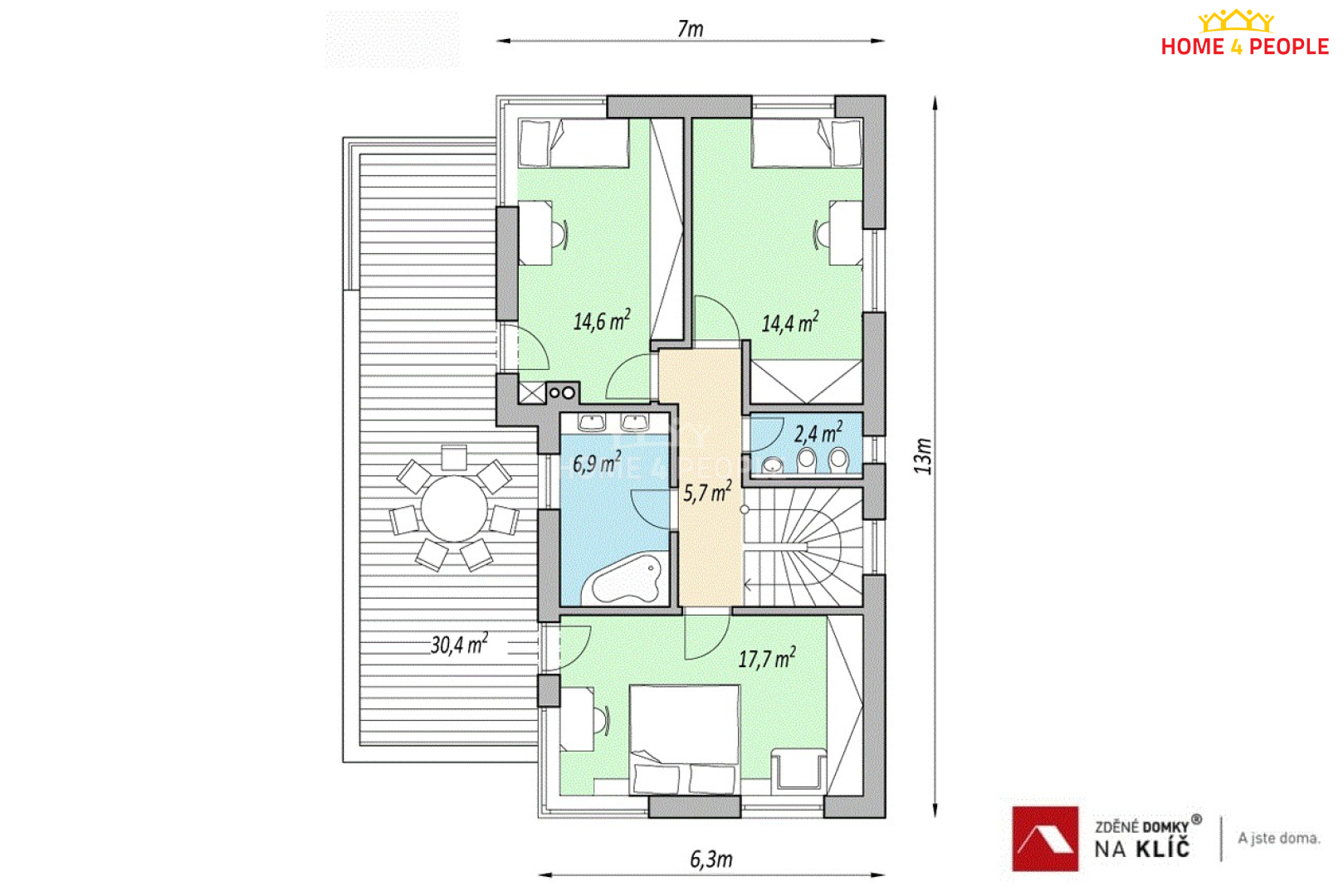 Váš nový domov ve Zlíně. Kde se historie potkává s moderním životem! Představte si domov, který v sobě nese duši Zlína, ale zároveň nabízí komfort a efektivitu 21. století. Přesně takový je náš nový patrový dům 5+kk na klíč, inspirovaný nadčasovou elegancí. Je to perfektní útočiště pro Vaši až pětičlennou rodinu, kde se budete cítit hrdě a spokojeně. Zapomeňte na starosti s výstavbou! Stavební povolení je již v ruce a my startujeme do 30 dnů, abychom Vám předali klíče od Vašeho vysněného domova za pouhých 12-14 měsíců. Komfort na klíč. Od A do Z. Užijte si bydlení bez kompromisů, kde je myšleno na každý detail. V ceně se základní fasádou, projekt, základová deska, veškeré přípojky, až po kolaudaci a finální úpravy. Prostorný a efektivní dům s užitnou plochou 149 m² pro Vaši rodinu s nízkými provozními náklady. Vlastní pozemek 400 m² v soukromí a pohodlné parkovací stání 36 m². Moderní Technologie pro Váš Klid. V interiéru na Vás čeká to nejlepší z moderních technologií. Ekologické a úsporné vytápění: Teplovodní podlahové topení v celém domě, poháněné tepelným čerpadlem se 180 L zásobníkem na teplou vodu. Pocit tepla a komfortu po celý rok. Vysoký standard vybavení: Kvalitní elektroinstalace, kompletní sanitární vybavení s moderními bateriemi, a elegantní interiérové dveře s obložkami. Přizpůsobte si své sny. Flexibilita dispozice: Možnost posunu příček a individuálních úprav již ve fázi projektu. Vytápění na míru. Dle dohody změníme systém vytápění nebo vystavíme komín pro krbová kamna/vložku pro útulné večery. Pro maximální pohodlí a luxus si můžete dům rozšířit o kryté garážové stání propojené s domem a stylovou terasu – krytou či nekrytou za příplatek. Nadstandardní výbavu: Chytrou domácnost, klimatizaci, rekuperaci, externí žaluzie/rolety nebo fotovoltaiku pro ještě větší úspory a komfort. Tento dům není jen stavba, je to životní styl. Spojení tradiční zlínské estetiky s moderními technologiemi a nízkými náklady. Nenechte si ujít tento jedinečný domov! Podívejte se sami! Srdečně Vás zveme na prohlídku pozemků a našich již realizovaných staveb, kde se na vlastní oči přesvědčíte o kvalitě a smyslu pro detail. Kontaktujte našeho makléře ještě dnes a udělejte první krok k Vašemu novému domovu ve Zlíně! Ev. číslo: 32040.