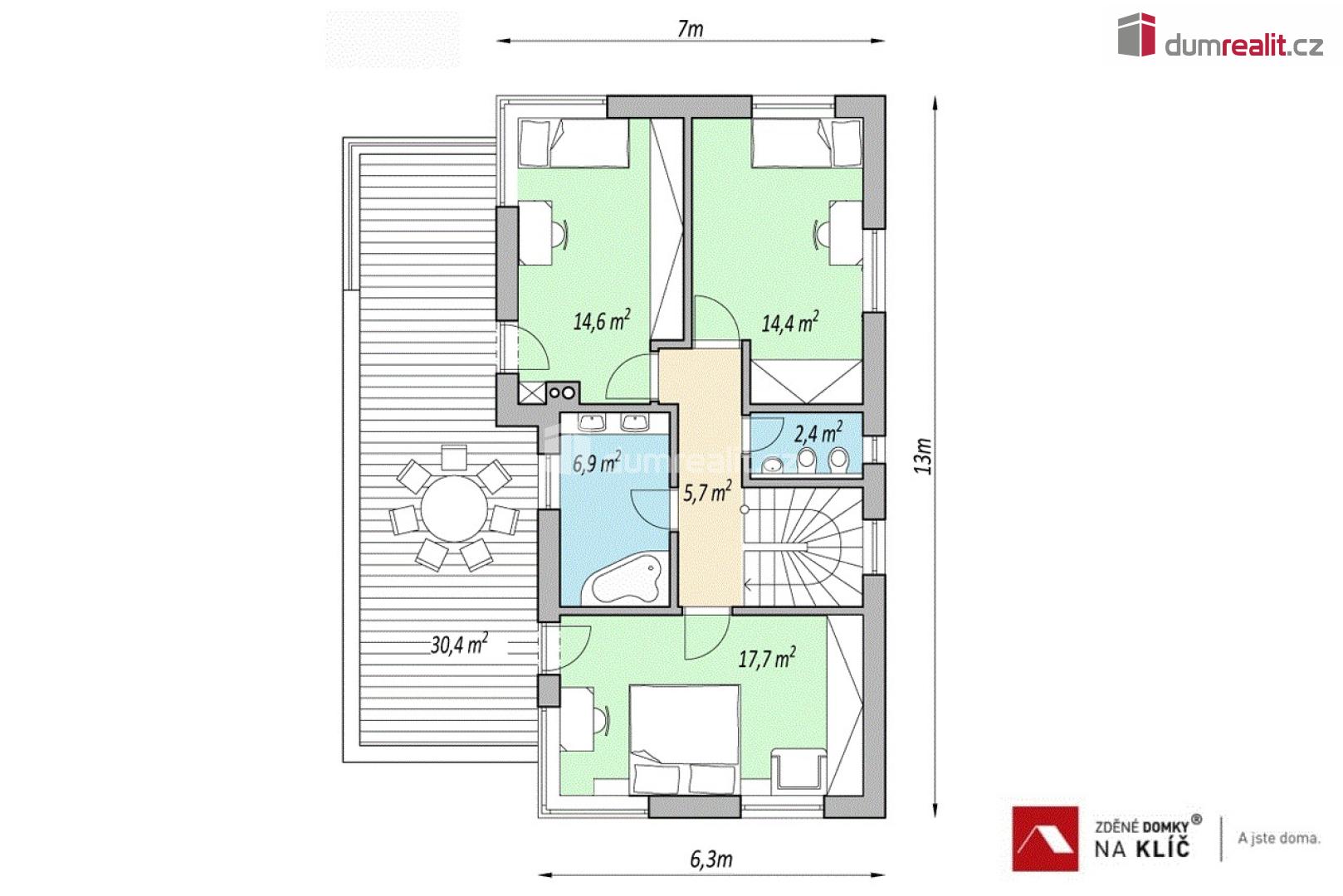 Váš nový domov ve Zlíně. Kde se historie potkává s moderním životem! Představte si domov, který v sobě nese duši Zlína, ale zároveň nabízí komfort a efektivitu 21. století. Přesně takový je náš nový patrový dům 5+kk na klíč, inspirovaný nadčasovou elegancí. Je to perfektní útočiště pro Vaši až pětičlennou rodinu, kde se budete cítit hrdě a spokojeně. Zapomeňte na starosti s výstavbou! Stavební povolení je již v ruce a my startujeme do 30 dnů, abychom Vám předali klíče od Vašeho vysněného domova za pouhých 12-14 měsíců. Komfort na klíč. Od A do Z. Užijte si bydlení bez kompromisů, kde je myšleno na každý detail. V ceně se základní fasádou, projekt, základová deska, veškeré přípojky, až po kolaudaci a finální úpravy. Prostorný a efektivní dům s užitnou plochou 149 m² pro Vaši rodinu s nízkými provozními náklady. Vlastní pozemek 400 m² v soukromí a pohodlné parkovací stání 36 m². Moderní Technologie pro Váš Klid. V interiéru na Vás čeká to nejlepší z moderních technologií. Ekologické a úsporné vytápění: Teplovodní podlahové topení v celém domě, poháněné tepelným čerpadlem se 180 L zásobníkem na teplou vodu. Pocit tepla a komfortu po celý rok. Vysoký standard vybavení: Kvalitní elektroinstalace, kompletní sanitární vybavení s moderními bateriemi, a elegantní interiérové dveře s obložkami. Přizpůsobte si své sny. Flexibilita dispozice: Možnost posunu příček a individuálních úprav již ve fázi projektu. Vytápění na míru. Dle dohody změníme systém vytápění nebo vystavíme komín pro krbová kamna/vložku pro útulné večery. Pro maximální pohodlí a luxus si můžete dům rozšířit o kryté garážové stání propojené s domem a stylovou terasu – krytou či nekrytou za příplatek. Nadstandardní výbavu: Chytrou domácnost, klimatizaci, rekuperaci, externí žaluzie/rolety nebo fotovoltaiku pro ještě větší úspory a komfort. Tento dům není jen stavba, je to životní styl. Spojení tradiční zlínské estetiky s moderními technologiemi a nízkými náklady. Nenechte si ujít tento jedinečný domov! Podívejte se sami! Srdečně Vás zveme na prohlídku pozemků a našich již realizovaných staveb, kde se na vlastní oči přesvědčíte o kvalitě a smyslu pro detail. Kontaktujte našeho makléře ještě dnes a udělejte první krok k Vašemu novému domovu ve Zlíně! Ev. číslo: 653950.