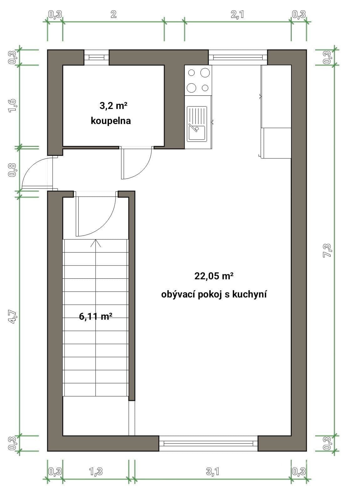 Prodej rodinného domu 3+kk v atraktivní lokalitě Zlín – Zálešná. Nabízíme patrový řadový dům ve výhradním vlastnictví, který prošel částečnou renovací v roce 2022 a je ve velmi dobrém stavu. Dům má užitnou plochu 65 m², zastavěnou plochu 92 m² a je vhodný jak pro rodinné bydlení, tak i jako investiční příležitost. Dispozice je řešena tak, že v přízemí se nachází prostorný obývací pokoj s kuchyní, který tvoří hlavní obytný prostor. Nahoře jsou umístěny dva samostatné pokoje. Interiér je částečně zařízený, vytápění a ohřev vody je zajištěn kombinovaným plynovým kotlem. Dům je připojen na městský vodovod a kanalizaci. Mezi výhody patří dvě parkovací místa přímo u domu a klidná městská zástavba s dobrou dostupností centra a veškeré občanské vybavenosti. Lokalita Zálešná je vyhledávaná část Zlína, která nabízí příjemné bydlení v blízkosti zeleně, a přesto s dostupností pracovních a volnočasových příležitostí v okolí. Nemocnice je od domu pouze kousek pěšky, což je velkou výhodou. Cena nemovitosti činí 6 900 000 Kč. Tento dům je ideální volbou nejen pro rodinné bydlení, ale i jako zajímavá investiční příležitost. Financování rádi zajistíme, takže vám pomůžeme s kompletním procesem koupě.