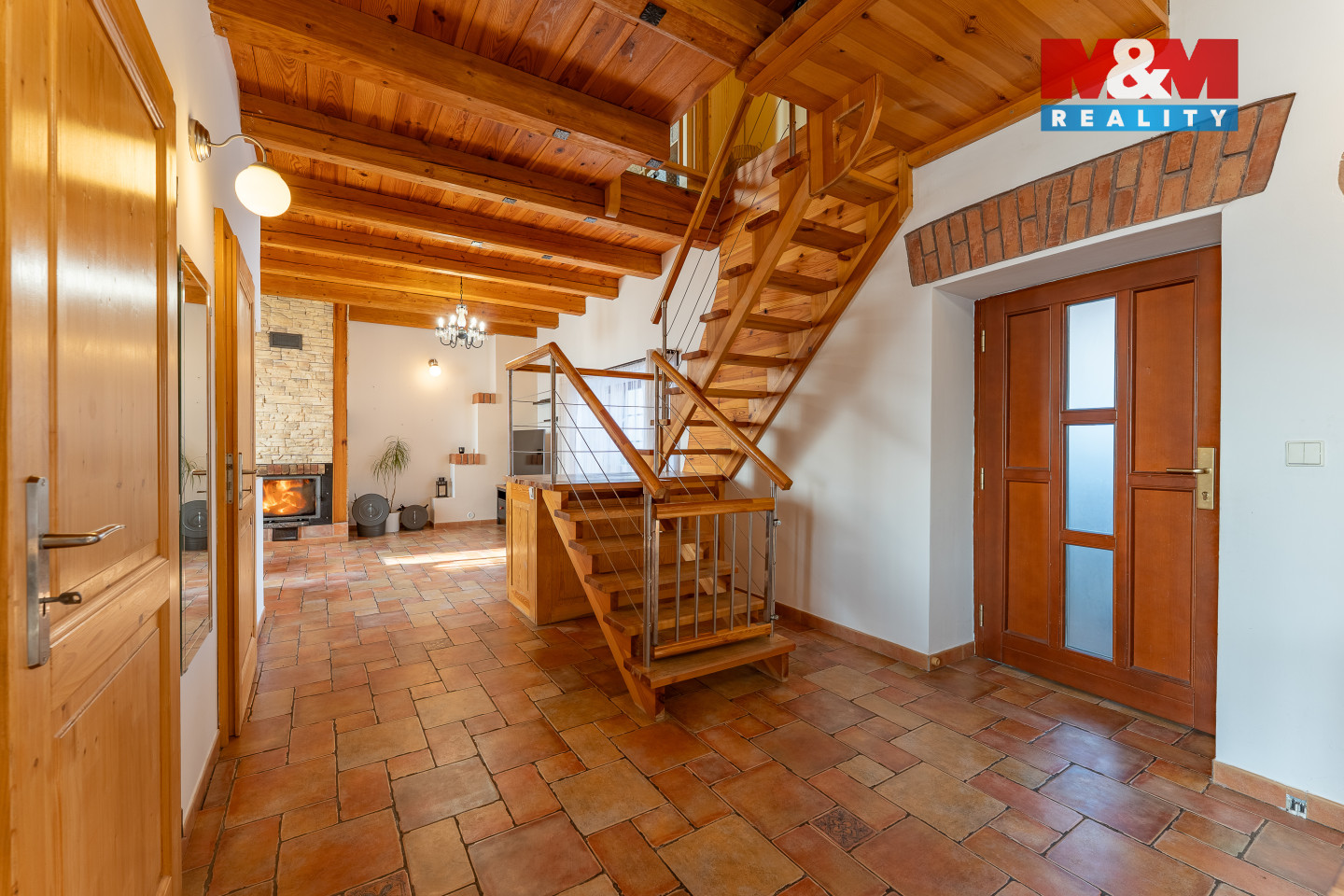 Hledáte klidné rodinné bydlení, kde má každý své místo a Praha zůstává na dosah? Tenhle dům vás zaujme hned při první návštěvě. Rodinný dům z roku 2012 je promyšlený do posledního detailu a ideální pro pohodový rodinný život. V přízemí s podlahovým vytápěním naleznete plně vybavenou kuchyň s jídelnou, praktickou komoru, koupelnu s toaletou a světlý obývací pokoj s majestátným krbem. Interiér působí útulně díky kombinaci dřeva, bílé barvy a kamene. V patře najdete tři samostatné pokoje, druhou koupelnu a terasu s výhledem na okolní krajinu. Na dům navazuje velká dvougaráž s pneumatickým heverem, která dříve sloužila jako pneuservis a nabízí tak široké možnosti využití i pro podnikání. Na oploceném pozemku je posezení pod pergolou, nadzemní bazén a komfort zajišťuje dálkově ovládaná pojezdová brána. Lokalita Zlonice - Vyšínek nabízí přesně to, co rodiny hledají – klid, bezpečí, přírodu a zároveň rozumnou dojezdovou vzdálenost do Prahy, dostupnost škol, školek i základní infrastruktury.