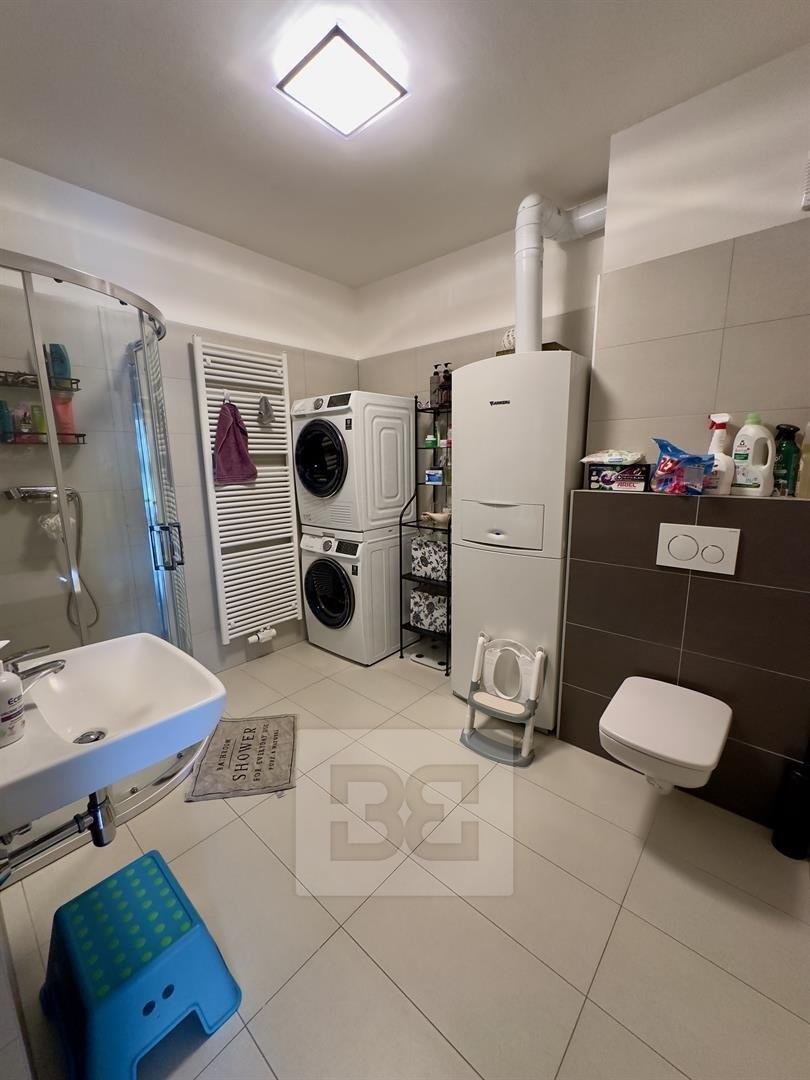 K nastěhování od 1.6.2026. Nabízíme Vám pronájem patrového rodinného domu s obytnou plochou 144 m² a zahradou 350 m², v ulici Borová - obec Zlonín. Přízemí se sestává ze vstupní chodby, koupelny se sprchovým koutem a toaletou, k dispozici je pračka a sušička, pokoje pro hosty s vybavením viz foto, komory v prostoru pod schodištěm a obývacího pokoje s kuchyňským koutem plně vybaveným vestavnými spotřebiči. Zůstává americká lednice a ostatní vybavení vyjma TV, pohovky a konferenčního stolku. Z obývacího pokoje lze vejít na terasu 17 m² s elektrickou markýzou a zastíněním, dále na zahradu 350 m², s nádrží na dešťovou vodu o objemu 14 m³. Po schodišti vyjdeme do prvního patra, které se sestává z haly, samostatné toalety, koupelny s vanou, dvou pracoven, které zůstanou prázdné, pod dohodě lze nechat stolky a křesla, ložnice s prostornou skříní a dětského pokoje. K domu náleží garáž 37 m². Zde zůstávají regály, druhá lednice, gril, změkčovač vody a zahradní vybavení. V oknech nainstalovány předokenní žaluzie, chytrá domácnost ovládána mobilní aplikací, druhý vodoměr na užitkovou vodu, která je levnější o 50%. Měsíční nájem činí 50 000 Kč. Poplatky za služby (voda, internet, plyn, elektřina, odpady včetně bio a alarm včetně SIM) ve výši 8 500 Kč pro 3 osoby + 500 za každou další osobu. Vratná kauce 100 000 Kč. Provize RK 50 000 Kč + DPH. Nechcete ztrácet čas? V případě zájmu Vám rád pošlu odkaz na virtuální prohlídku, abyste měli úplnou představu o nabízené nemovitosti (360C prohlídka s možností orientace ve videu dle vašich představ).