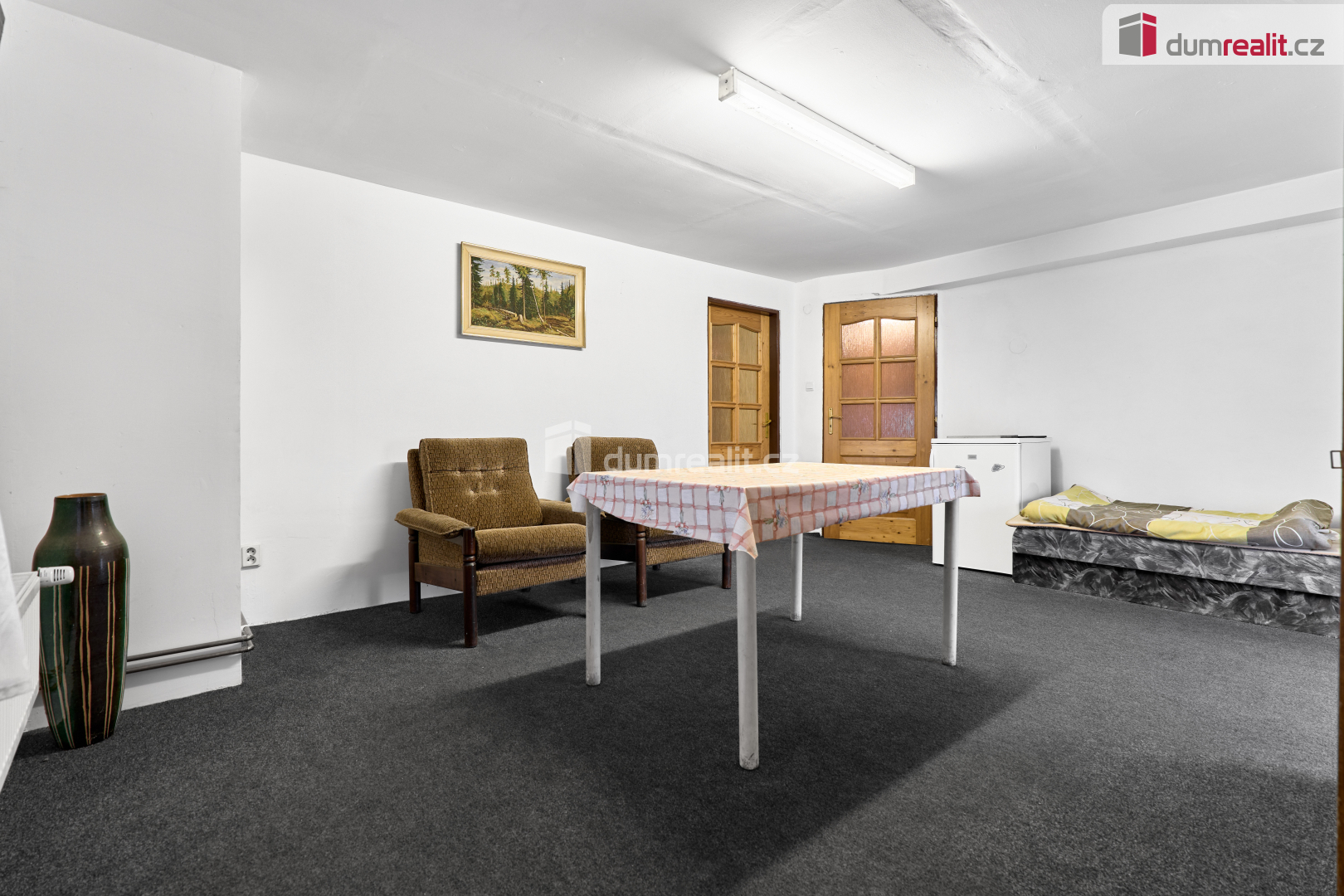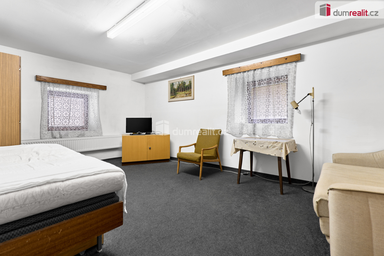 Naše společnost Vám zprostředkuje prodej chalupy ve velmi klidné lokalitě ve Verušicích, které jsou součástí obce Žlutice. V přízemí domu je obývací pokoj s kuchyní a krbovými kamny (s možností připojení na radiátory), koupelna s WC a sprchovým koutem, 2 garáže a technická místnost s kotlem na tuhá paliva. V 1. patře jsou 4 samostatné pokoje, koupelna s vanou a samostatné WC. V dalším patře je půda, která je využívána jako odkládací prostor. Na pozemku je další samostatná dřevěná garáž, pergola u domu, přístřešky na dřevo a ovocné stromy. Dům je více než 100 let starý, v letech 1990 - 1995 prošel rekonstrukcí - byly vyměněny všechny rozvody, (voda, el. energie, topení), dřevěná okna, dveře, podlahy a střecha. Objekt je zčásti podsklepen a je napojen na veřejný vodovod a elektřinu, odpad je sveden do ČOV. V okolí je nádherná příroda s lesy, loukami a mnoha historickými památkami v okolních obcích. Ev. číslo: 653259.