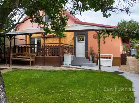 V zastoupení majitele Vám ke koupi nabízíme zahradu o celkové výměře 1176m². Na zahradě stojí chata s 90ti metry užitné plochy a nachází se ve Znojmě. Na zahradě se trvale bydlí a je tak připravena právě pro Vás. Chata se skládá ze tří pokojů a kuchyně. Ve spodním patře ložnice, chodba, koupelna. Dále komora a vstup do sklepa. Následuje kuchyně se vstupem na terasu a obývací pokoj. V horním patře potom jeden velký pokoj. Mezi kuchyní a obývacím pokojem jsou krbová kamna, která slouží jako jedna z možností vytápění. Druhou z možností je klimatizační jednotka. Ohřev vody je zajištěn elektrickým bojlerem. Na pozemku naleznete také bazén v zemi. Venkovní zahradní domek s kuchyní, terasu s posezením. V zadní části zahrady se nachází skleník a prostory pro pěstování zeleniny. Ve přední části potom ovocné stromky a okrasnou zahradu. Parkování je možné před pozemkem, na krytém místě na pozemku a také v garáži. Pro více informací mne neváhejte kontaktovat. Rád Vám vše osobně představím.