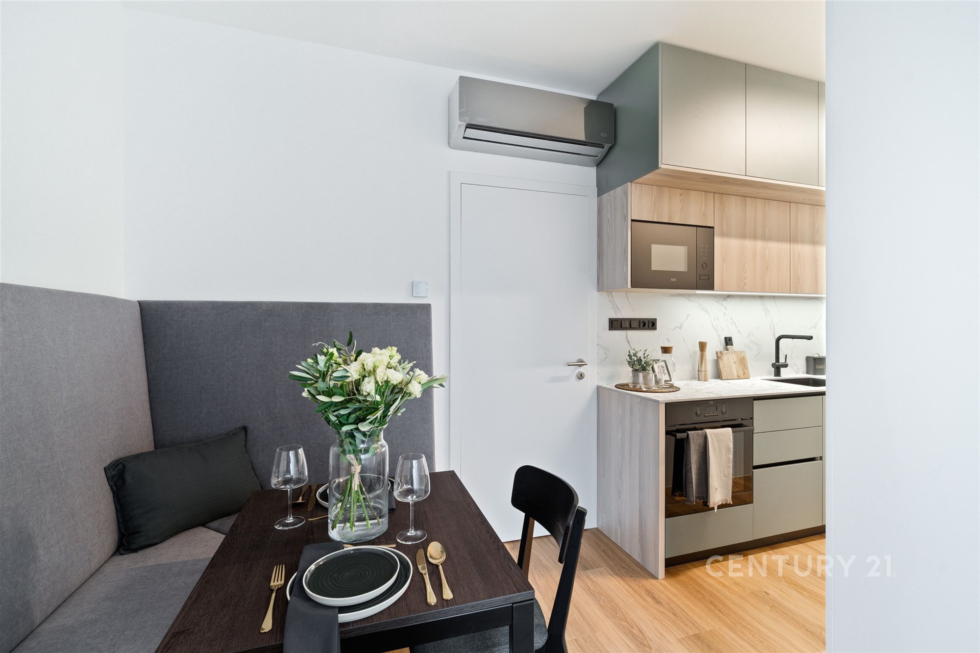 V zastoupení majitele nabízím k pronájmu krásný a komfortně zařízený byt o dispozici 2+kk a ploše 36 m². Byt se nachází v novostavbě Rezidence Klement na ulici Kotkova ve Znojmě. Jedná se o skutečně nadstandartní bydlení nedaleko centra Znojma v polyfunkčním domě, v pěší vzdálenosti od obchodních domů Albert a Lidl, stejně tak i na autobusové nebo vlakové nádraží. Atraktivitu tohoto bytu charakterizuje vlastní terasa do vnitrobloku o výměře 25 m² , blízkost centra i Vídeňské třídy, což zajišťuje bezproblémovou dostupnost do Vídně i do Brna. Byt se nachází ve 2. NP s okny i terasou orientovanými na jih. Je nabízen plně vybaven: spotřebiči vybavená kuchyňská linka, jídelní stůl a židle, lavice, gauč, postel vč. roštu a matrací, koupelna s toaletou a sprchovým koutem. Velkým bonusem tohoto bytu je kromě velkorysé terasy také šatna a vestavěná skříň. Byt je vytápěn elektrickým podlahovým topením a vybaven klimatizací. K dispozici je také sklepní kóje. Výstup do patra zajišťuje krom schodiště i moderní výtah. V případě zájmu je možné pronajmout i garážové stání. Cena nájmu je 13 500 Kč měsíčně + zálohy na energie 3 700 Kč. Majitel požaduje kauci ve výši 3 měsíčních nájmů, tj. 40 500 Kč Odměna RK je ve výši jednoho měsíčního nájmu + 21% DPH, tj. 16 335 Kč V případě zájmu o prohlídku mě neváhejte kontaktovat.