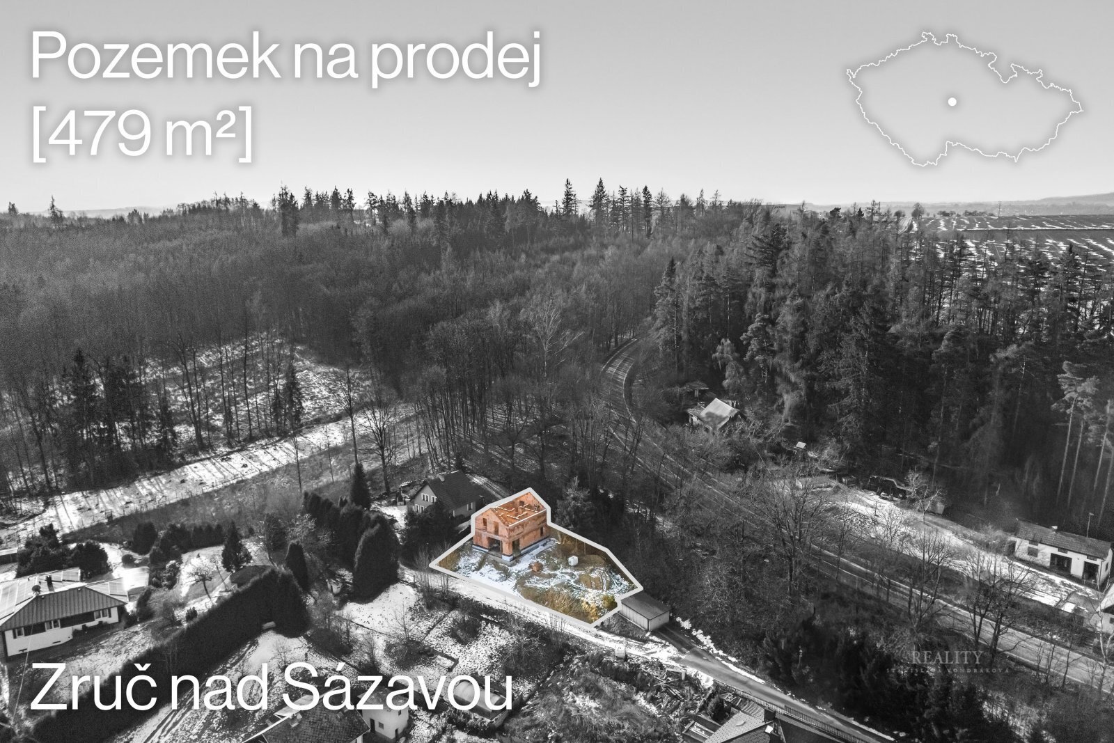 Nabízíme k prodeji stavební pozemek o velikosti 479 m² s rozestavěnou stavbou rodinného domu, projektovou dokumentací a platným stavebním povolením. Tato nemovitost představuje ideální příležitost pro ty, kteří chtějí bydlet v moderním domě s krásným výhledem a zároveň si finální podobu interiéru i materiálů přizpůsobit vlastním představám.Na pozemek bylo vydáno platné stavební povolení (2025) na kompletní projekt rodinného domu s garáží stavbu lze převzít okamžitě a plynule pokračovat v realizaci. Součástí prezentace jsou detailní vizualizace budoucí podoby domu dle projektové dokumentace a také promo video s vloženou vizualizací, které nabízejí jasnou představu o výsledném řešení i celkovém charakteru stavby. Projekt domu citlivě pracuje se svažitým terénem. Architektonické řešení umožňuje přímý vstup z obytné části na prostornou terasu, která současně tvoří střechu garáže. Dům je navržen s důrazem na komfort, světlo, soukromí a maximální využití výhledu do okolní krajiny. Inženýrské sítě elektrická přípojka je hotová voda je vedena v komunikaci, připojení je schváleno ve stavebním povolení odpad řešen jímkou (alternativně možnost ČOV) Hlavní přednosti nemovitosti -krásný otevřený výhled -vysoká míra soukromí -minimální provoz v klidné slepé ulici -možnost okamžitého pokračování ve stavbě -moderní projekt s promyšleným řešením terénu Okolí, vybavenost a životní styl Nemovitost se nachází ve Zruči nad Sázavou – atraktivní a klidné lokalitě středních Čech, která nabízí kombinaci venkovského klidu, výborné občanské vybavenosti i bohatého volnočasového života. Ve městě a jeho bezprostředním okolí najdete: -historický zámek a zámecký park s výhledy a posezením pro rodinné výlety, děti ocení zábavně-naučné stezky a expozice pro nejmenší. -rozhlednu Babka a další turistické trasy, ideální pro procházky a cyklovýlety v přírodě Posázaví. -vodácké muzeum, muzea a zajímavé expozice pro volný čas. -řadu kulturních a společenských akcí a bohaté sportovní vyžití podél řeky Sázavy. Současně je Zruč nad Sázavou dobře dostupná i pravidelnou veřejnou dopravou a vlakovým spojením. Občanská vybavenost ve městě zahrnuje obchody, služby, školy i zdravotní péči – vše dostupné v rámci města. Tento inzerát je nyní atraktivní jak pro klienty hledající klidné bydlení s výhledem a soukromím, tak pro ty, kteří chtějí okamžitý start stavby bez kompromisů.