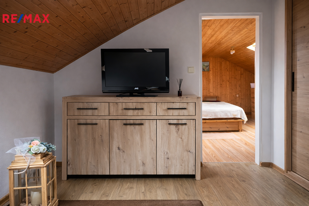 Exkluzívně Vám nabízíme k prodeji patrový rodinný dům v žádané lokalitě v obci Zruč-Senec. Tento řadový rodinný dům byl rozšířen o přístavbu a zkolaudován v roce 2015. V přízemí se nachází prostorný obývací pokoj s jídelnou a francouzským oknem do zahrady. Kuchyně, koupelna, toaleta a menší vstupní hala. V podkroví jsou tři ložnice. Jedna aktuálně slouží jako šatna. Ústí na prostornou terasu s výhledem na okolí. Menší, velmi dobře udržovaný objekt s menší zahradou, s okrasným záhonem, a sezóním posezením pod přístřeškem. Dům je v velmi dobrém stavu, interiér je světlý a prakticky řešený. Součástí vybavení jsou francouzské okno do zahrady, terasa a přístřešek sloužící jako pergola, které zajišťují příjemné venkovní posezení. Lokalita se vyznačuje hezkou zástavbou, blízkostí přírody a zároveň v těsnou blízkosti města Plzně. Odpady jsou napojeny na kanalizaci, přívod vody je z vodovodu i z vlastní studny. Elektřina 230 V, internetové připojení optikou. Topení zajišťuje kotel na tuhá paliva, doplňkově krbová kamna v kuchyni jako lokální vytápění. Teplá voda je ohřívána elektrickým bojlerem. Dopravní dostupnost je velmi dobrá. Nemovitost představuje vhodnou volbu pro ty, kdo hledají menší rodinný dům v klidné a žádané lokalitě obce s dobrou občanskou vybaveností a dostupností do okolních center. V případě zájmu o prohlídku nás neváhejte kontaktovat. S výhodnějším financováním Vám rádi pomůžeme.