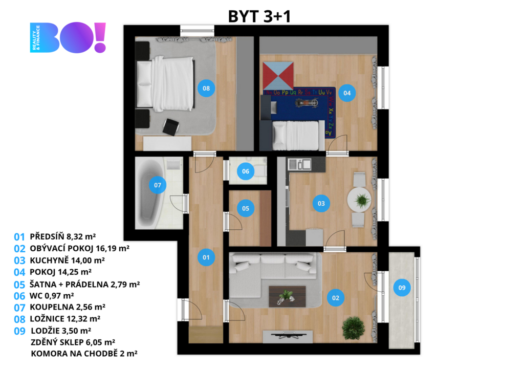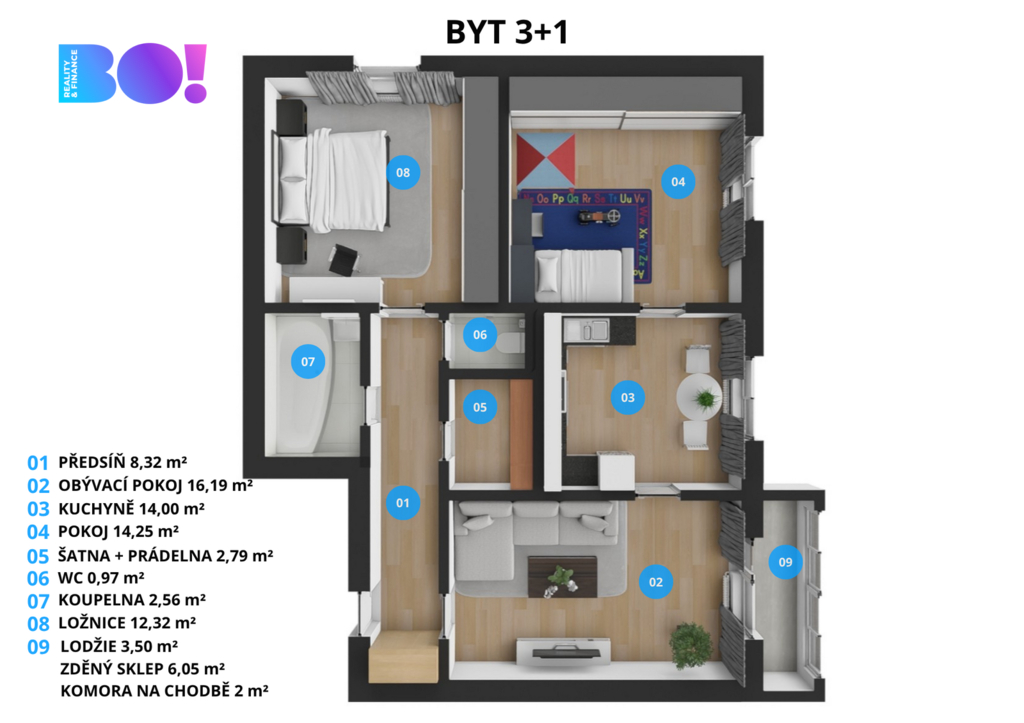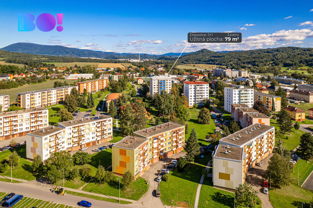 Hledáte pohodlné bydlení na Rožnovsku? Máme pro vás příjemný byt v osobním vlastnictví v Zubří. Do centra Rožnova to jsou jen 4 km. Byt se nachází v 3. patře panelového domu s výtahem. Jeho celková užitná plocha je 82,95 m². Dispozice 3+1 s podlahovou plochou 71,4 m² umožňuje opravdu pohodlné bydlení. Praktická je navíc i samostatná místnost na pračku a domácí prostředky. K tomu je možné v obývacím pokoji využít zasklený balkon o velikosti 3,5 m². Výhodou bytu jsou další nebytové prostory - přímo na patře se nachází komora, kde uskladníte vše, co má být po ruce. V přízemí je k dispozici 6ti metrový zděný sklep. Z této strany je do domu bezbariérový vstup. Byt prošel v milulých letech rekonstrukcí - elektroinstalace, vodoinstalace, podlahy, kuchyně, koupelna. Stačí si tedy jen vyšperkovat, doplnit nábytek a máte pohodové bydlení v tiché oblasti, tichém domě, v ložnici navíc s výhledem do korun stromů. A lokalita? Perfekní. U domu je školka a potraviny, v docházkové vzdálenosti další obchody, Tesco, sportovní hala, kino. Autobusová a vlaková zastávka je do 10 minut pěší vzdálenosti, okolní města jsou tak běžně dostupné. Kromě veškeré občanské vybavenosti je zde řada kulturních a přírodních zajímavostí. Okolí láká na cyklovýlety, turistiku, všemožné sportovní aktivity, kulturu či kavárny. Konec konců jsme v Beskydech a ty mají co nabídnout. Hledáte-li hotové pěkné bydlení, ozvěte se. S financováním vám pomůžeme.