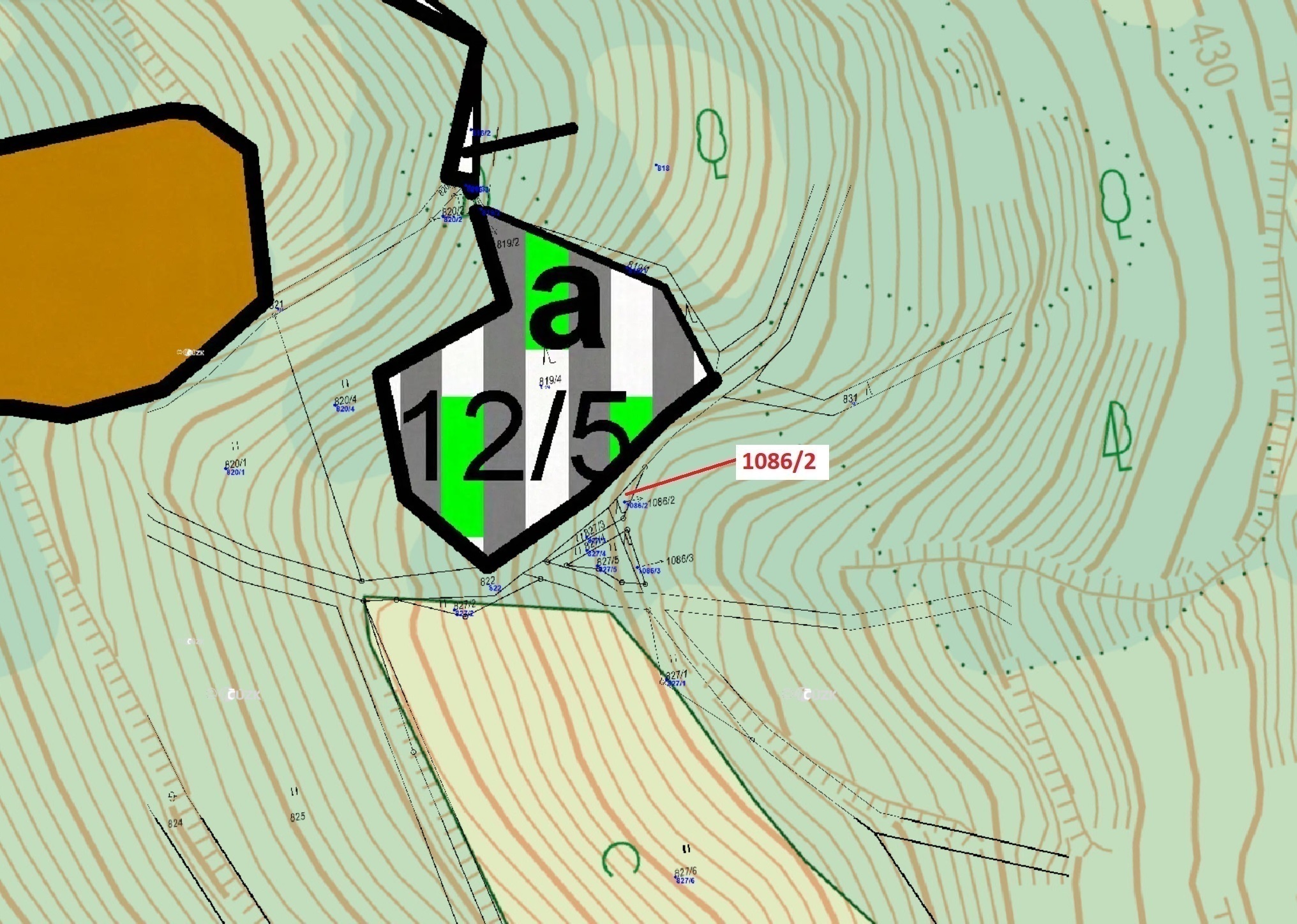 Lesní pozemek o výměře 26 m2, podíl 9/10, katastrální území Zubrnice, obec Zubrnice, obec s rozšíře