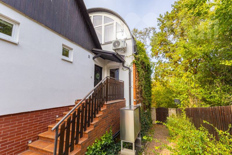 Hledáte pro rodinu dokonalé, tiché bydlení v přírodě, klid a soukromí? A to vše v bezprostřední blízkosti hlavního města Prahy? Právě jste našli! Nabízíme Vám k prodeji rodinný dům o dispozici 6+1 s absolutním soukromím a s dokonale udržovanou zahradou. Ideální pro klienty s potřebou energetické soběstačnosti. V roce 2022 na domě proběhla částečná rekonstrukce - podlaha v přízemí - střešní krytina, -venkovní dlažby a terasa, -tepelné čerpadlo -FTV 10kwh -bateriové úložiště 9 kwh -klimatizace ve všech místnostech -zateplení půdy a střechy. Přízemí domu: -kuchyně s americkou lednicí LG, jídelna se vstupem na terasu a zahradu, pokoj pro hosty s vestavnými skříněmi, obývací pokoj s krásným trámovým stropem, 2 koupelny s rohovými vanami a 2 toalety, z toho jedna samostatná, šatna s vestavnými skříněmi a zádveří. Podkroví: -2 pokoje s vestavnými skříněmi, jeden s balkónem, atypická ložnice s obloukovým oknem, vestavnými skříněmi a výhledem do lesa. Další vybavení: -dvougaráž, sauna, pracovna s vlastním zázemím, samostatným vchodem, terasou, předzahrádkou a vlastním vstupem z ulice, která se dá využít k podnikání. Prádelna, technické zázemí a 3 sklepní prostory. -vzrostlá a udržovaná zahrada -zabudovaný vyhřívaný bazén s protiproudem, dětské hřiště a posezení s grilem, dřevěný domek na kola, zahradní nářadí a další. -vodovod -kanalizace -vrt na vodu. Plyn v obci zaveden není. -plná občanská vybavenost, MHD každých 20min. do stanice Kačerov. Vlak z Vraného nad Vltavou do Prahy Hl. nádraží. Základní i mateřská škola, pošta, lékař. -dvě fotbalová hřiště s večerním osvětlením, beachvolejbalové hřiště, čtyři dětská hřiště. -zájmové a sportovních spolky Cyklostezka, lyž. areál Chotouň. En. štítek domu se zpracovává. Jste v srdci přírody, ale zároveň na dosah všech služeb. Pokud Vás tato nabídka zaujala, kontaktujte prosím realitního makléře. Rádi Vás provedeme.